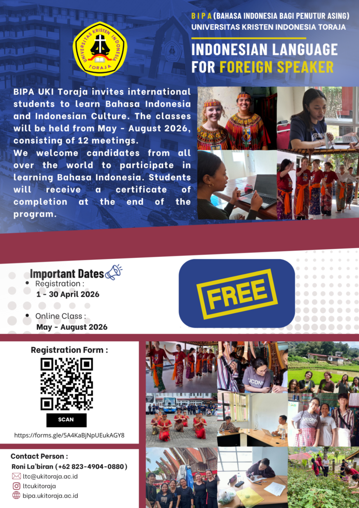 Ready to explore the beauty of the Indonesian language and culture? Join the BIPA (Indonesian for Foreign Speakers) Program at UKI Toraja! ๐ฎ๐ฉโจ